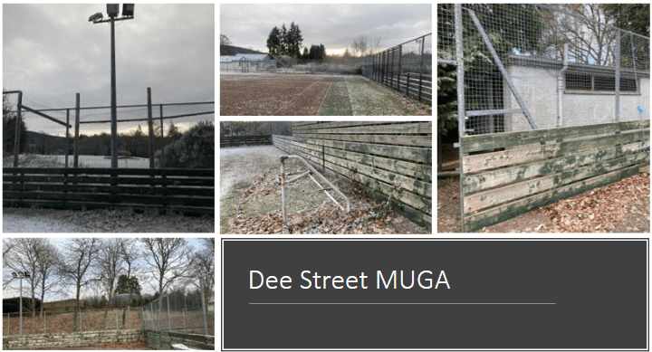 BOA has identified the Dee Street MUGA as it’s first project. Situated in the heart of Banchory, the existing facility is derelict and unused. Previously, it was used primarily for football and tennis and it has potential to be upgraded to a multi-sport and well-being area.
