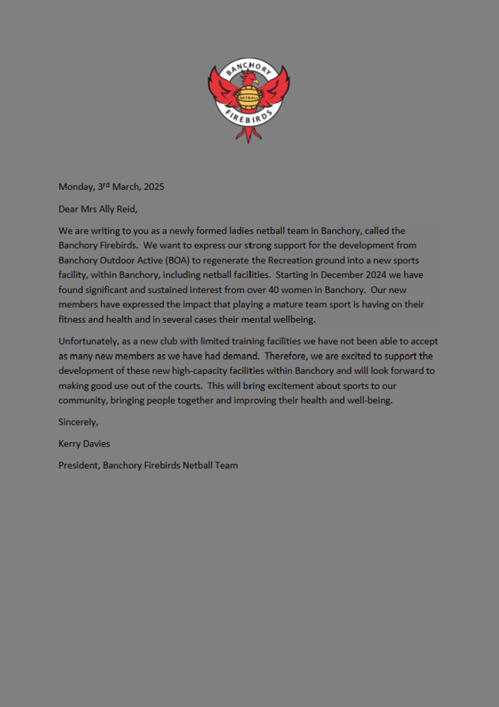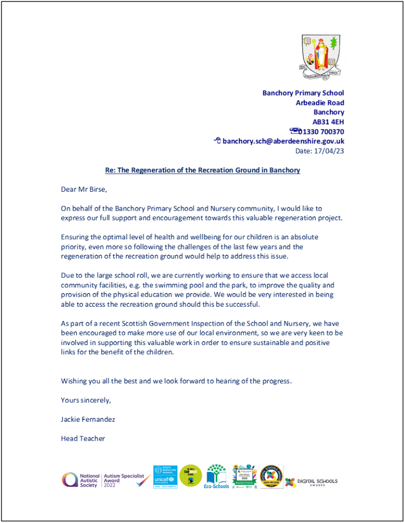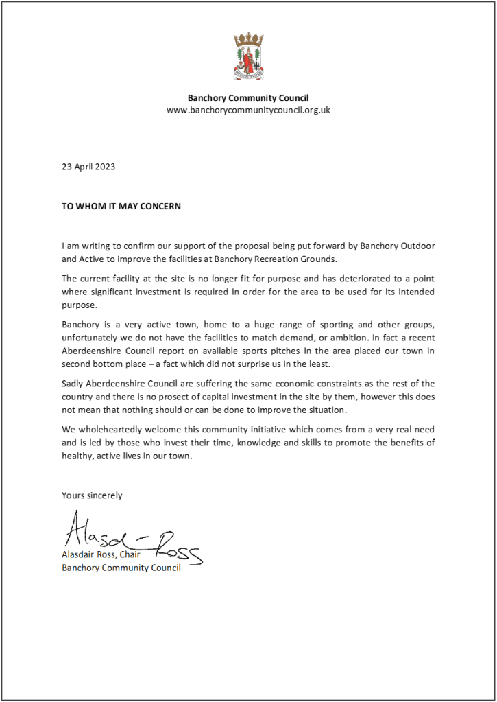 Communication with Aberdeenshire Council has indicated that the community can seek ownership of this area to create a modern multisport training facility for the Banchory community.