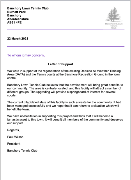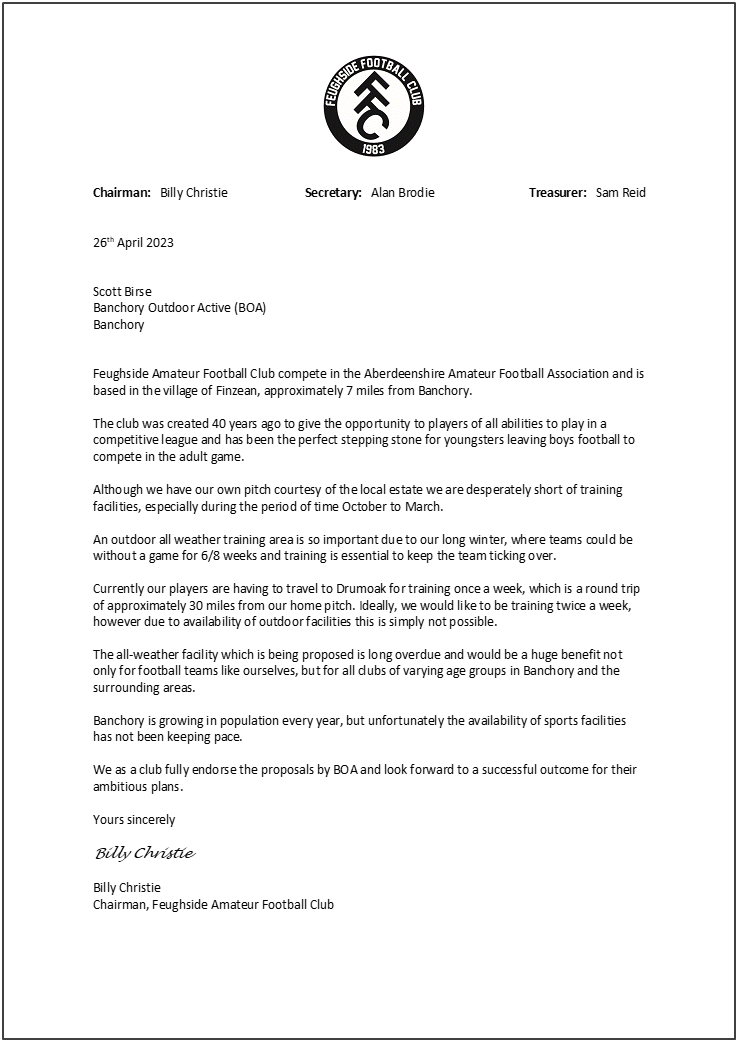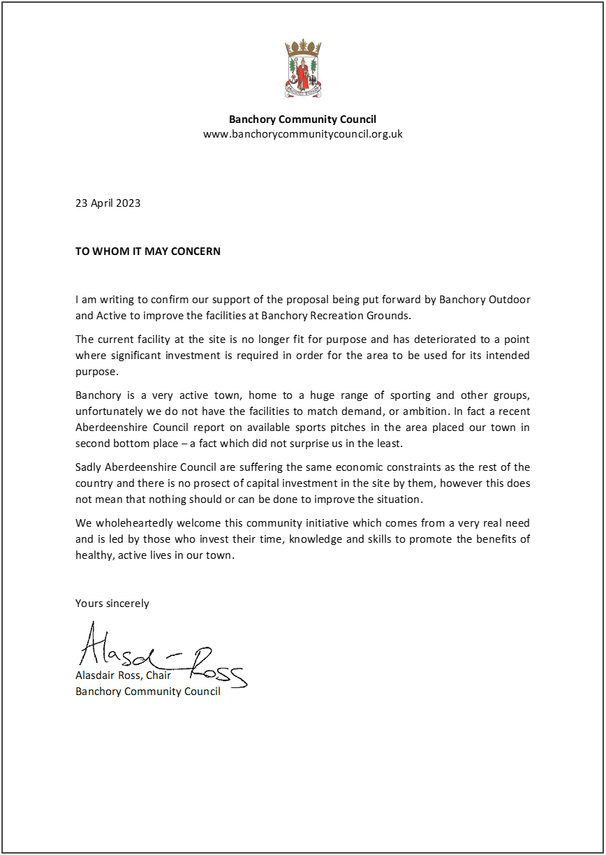 BOA’s proposals have been backed by a range of local clubs, schools and community organisations, demonstrating clear demand for improved facilities in Banchory.